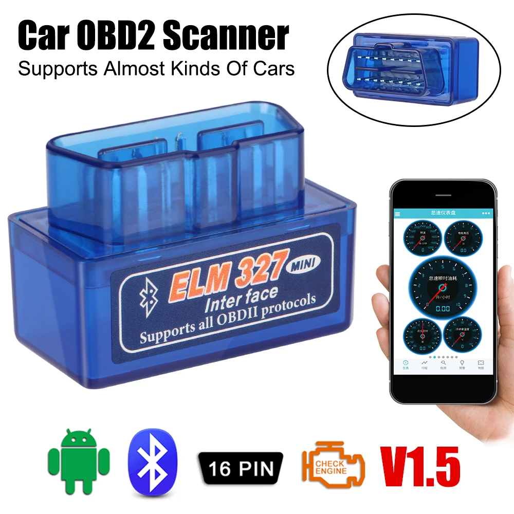 For IOS/Android Dual Mode Bluetooth V1.5 Detector Mini ELM327 OBD2 Interface Adapter Code Reader Car Diagnostic Scanner
