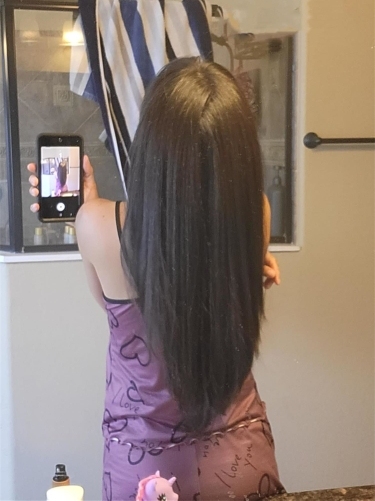 Today after using hair mask for a few weeks, my hair is strong, defined, shiny, and beautiful! I’ll let the photos speak for themselves.
