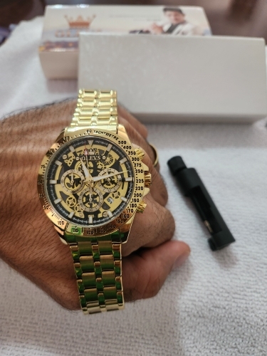 Elegant and beautiful. It attracts attention. It came very well packaged, with a free gift of a bracelet and came with a key for adjusting the watch strap. Excellent. I recommend it, it’s worth the purchase. Easy to adjust.