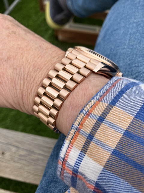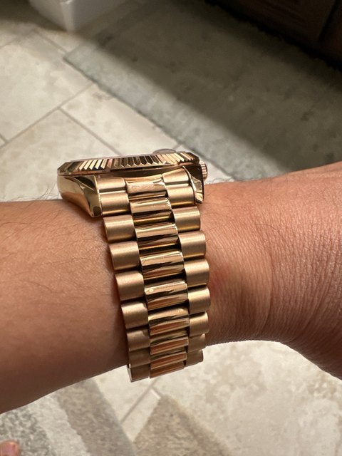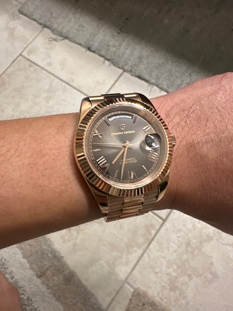 I love this watch. I have it in rose gold also & both of them look identical to a rolex. As long as you continue to move your hand so that someone trying to look at it can’t see the makers mark then it’s impossible to tell that it’s not an $80,000 watch. The movement is perfect & keeps the time incredibly well. Seriously, why would you buy a rolex if you could just buy a pagani design watch. If it’s about the look then buy pagani design!! It even has screw in pieces just like rolex does on the band
