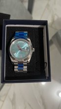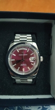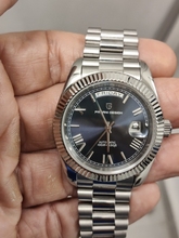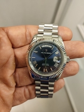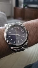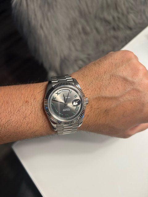 Great homage of the rolex day date 40mm. Stainless steel bracelet, butterfly clasp. Screws easy to remove to adjust bracelet length. Sapphire crystal glass and cyclops, with a mineral glass exhibition case back displaying the seiko nh36a movement, guaranteeing excellent time keeping. Fantastic value for money. Fast shipping to uk – just 5 days. Highly recommend the seller. Thank you 🙏