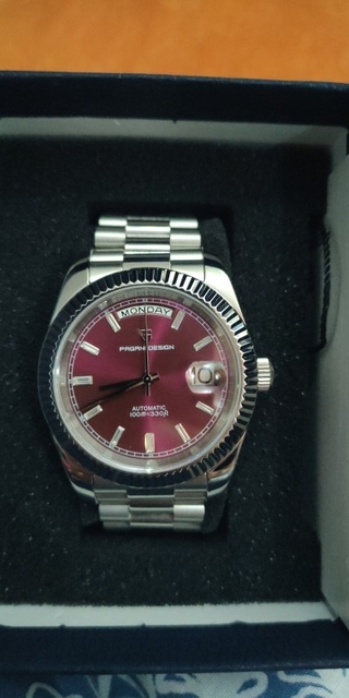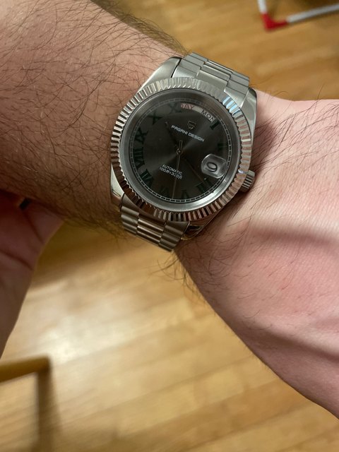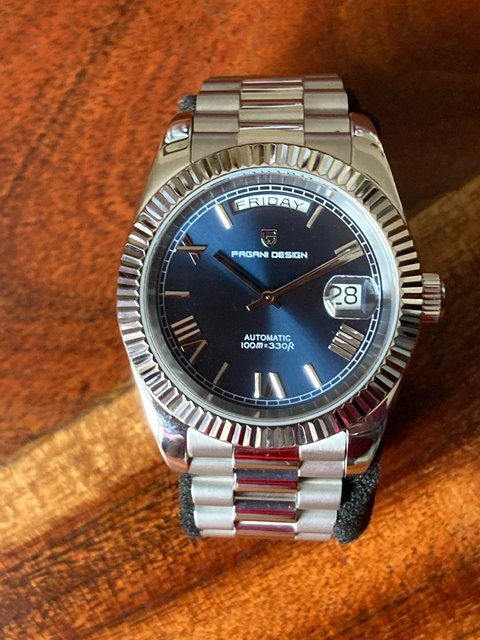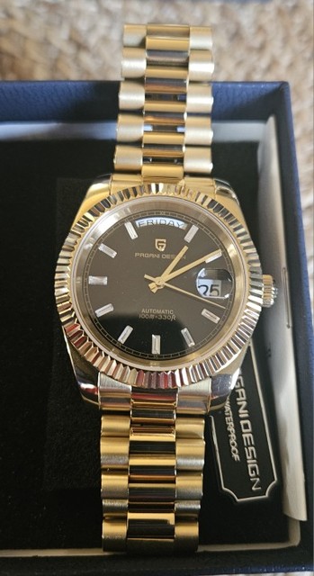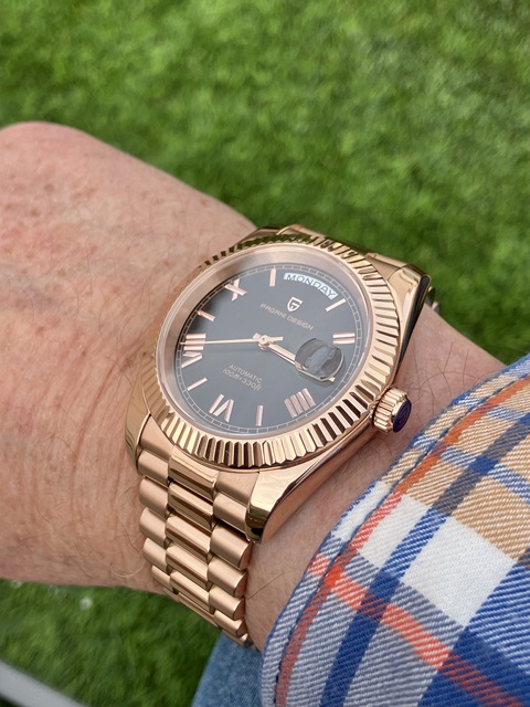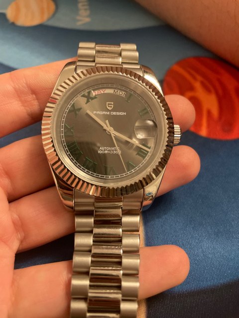 Very nice homage to the rolex wimbledon day date. Great quality throughout, sapphire glass and a seiko movement. I love pagani design watches and this was no exception.