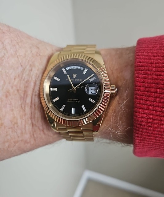 The mrs. said ypu don’t have a gold watch with all your other ones browsed youtube saw some reviews on the previous version of this watch and a few on the latest and have to say very happy with this purchase. Again one of the many pagani design watches that i have this is just the latest addition to my watch collection