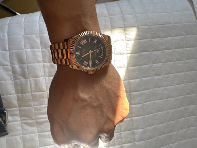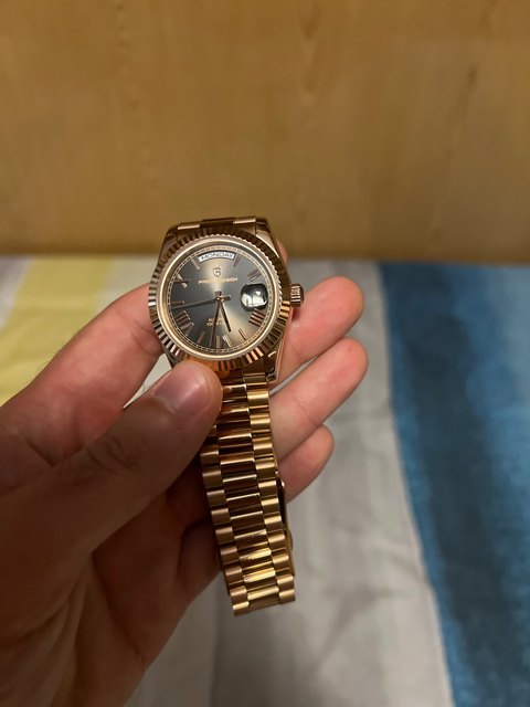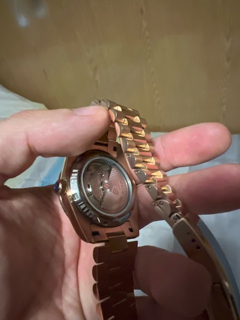 Today I received the shipment with the ordered products. Everything is fine. The ordered watch turned out great. Beautifully made, looks great on the wrist. Watch color scheme tj. green disc + rose gold bracelet match beautifully. The watch is slightly different from the original. I recommend.