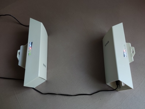 The device works, the radio bridge automatically established a connection, I use it to transmit Wi-Fi from one house to another, distance up to 200 m.